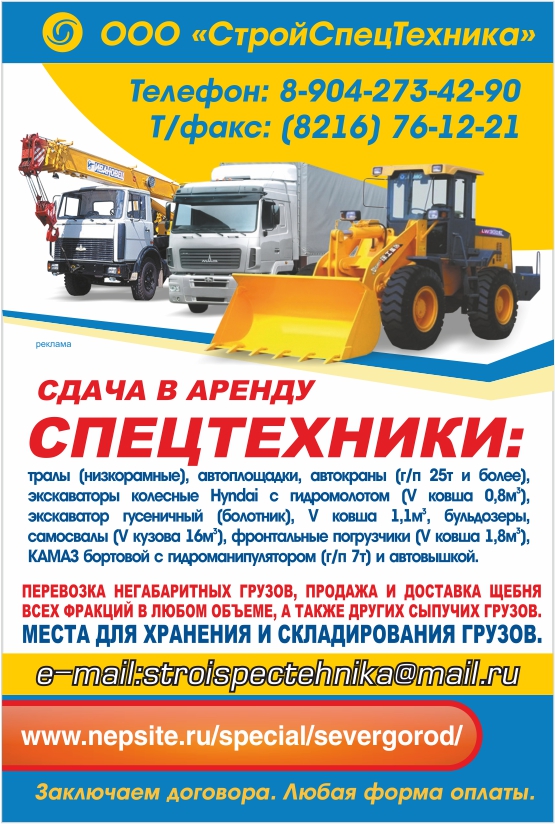 Сдача в аренду спецтехники, перевозка негабаритных грузов, продажа и доставка щебня.