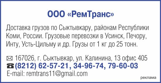 Сборные грузы, попутные грузы, переезды квартирные и офисные, услуги грузчиков. Перевозка грузов в отдаленные районы Республики Коми (Усинск, Печора, Усть-Цильма, Вуктыл, Троицко-Печорск и т.д.).