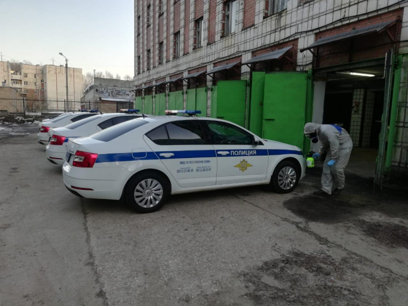 Министерств внутренних дел по Коми в целях недопущения распространения новой коронавирусной инфекции среди личного состава и граждан весь задействованный служебный автотранспорт подвергается ежедневной профилактической дезинфекции.