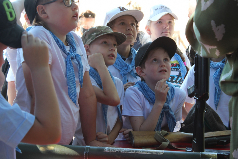 Представитель объединения Алексей Грицаенко показал динамовцам оружие, которое использовалось в годы войны. Это ППШ, автомат Калашникова, реактивная противотанковая граната "Муха". Также на площадке воспитанники лагеря узнали о родах войск, о подвигах русских солдат во время локальных войн, учились разбирать и собирать оружие.