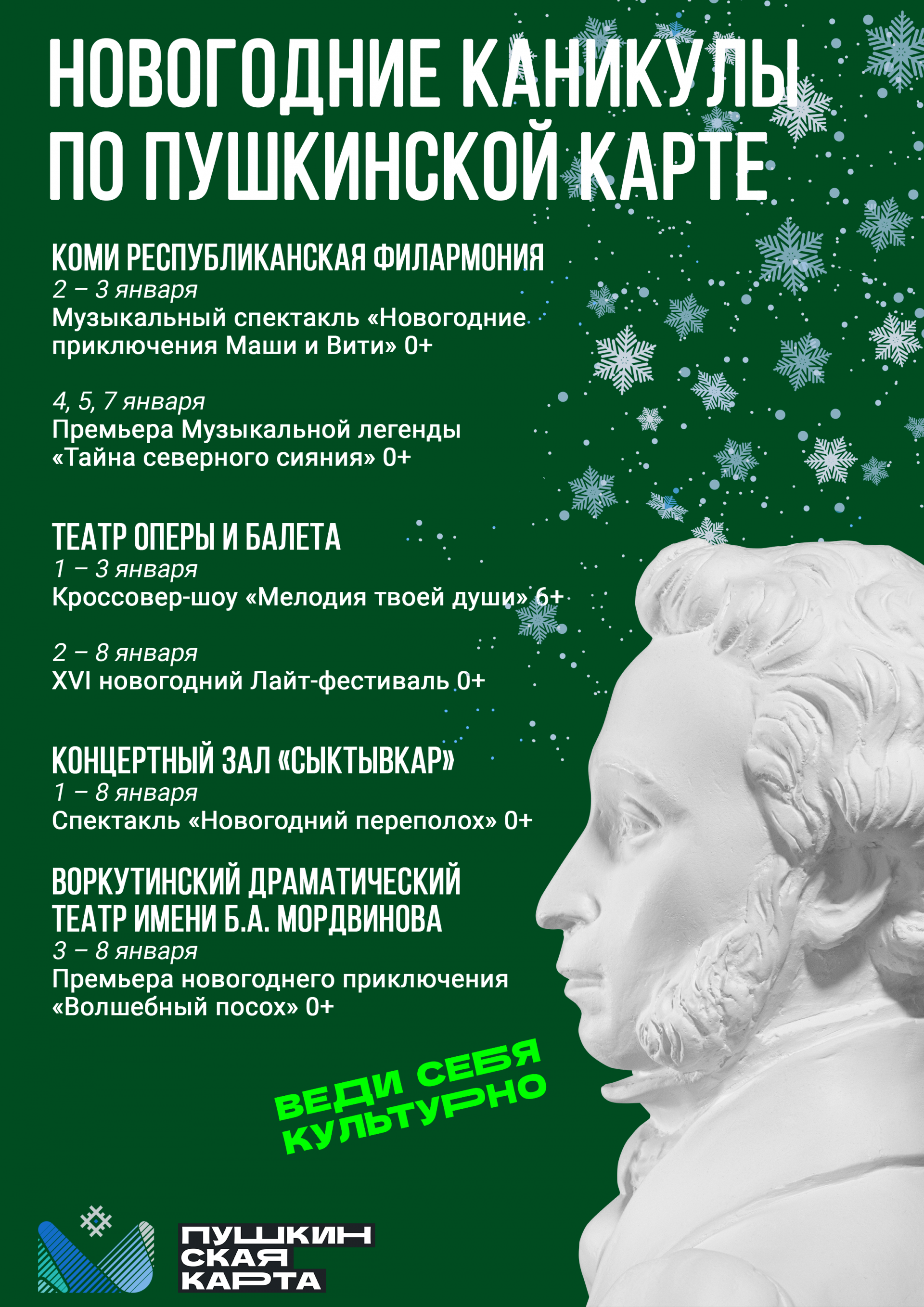Новый год - время подарков, а подарки любят и маленькие, и взрослые. Учреждения культуры региона тоже решили сделать подарок жителям региона и подготовили обширную программу новогодних мероприятий, которые можно посетить по Пушкинской карте.