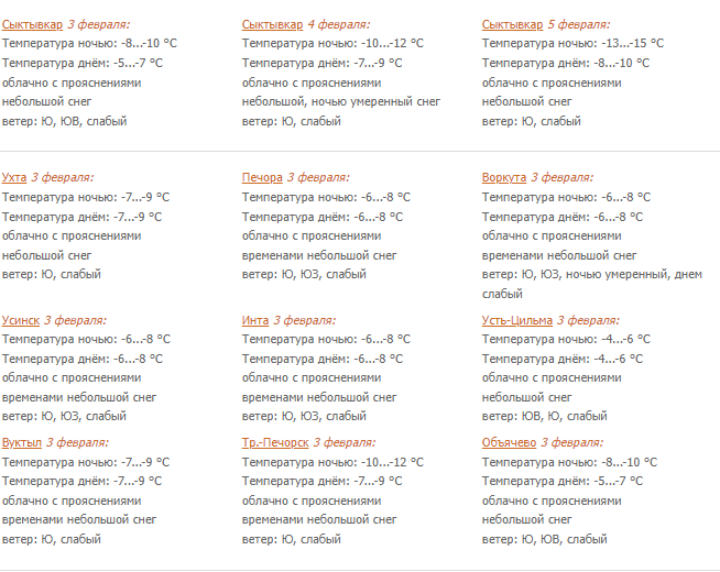 В Сыктывкаре 3 февраля облачно с прояснениями. Небольшой снег. Ветер южный, юго-восточный 3-8 м/с. Температура ночью -8...-10, днем -5...-7°С.